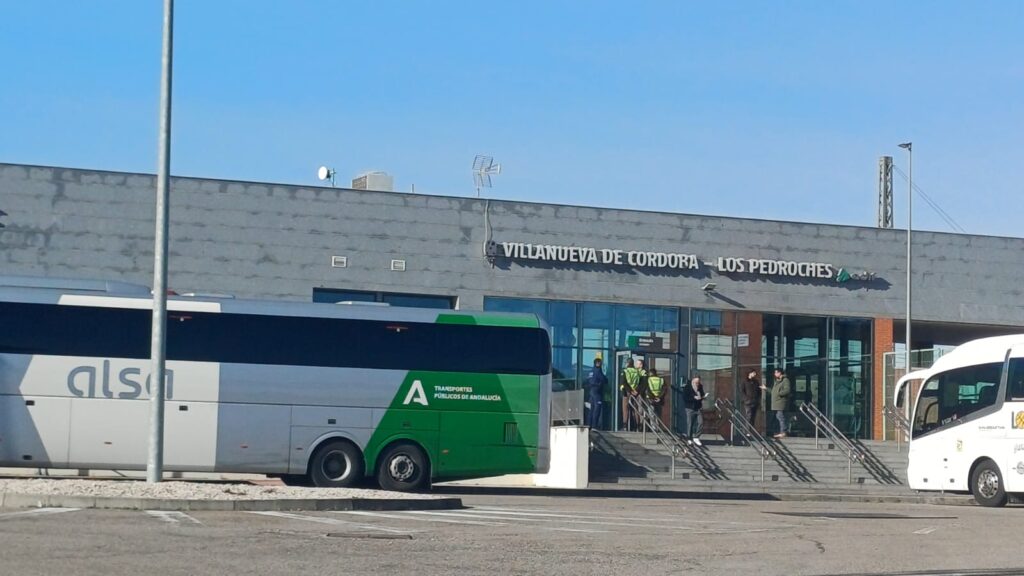 Isaac Reyes, junto a personal de ADIF, han atendido esta mañana a las 8,20 h. la llegada del primer tren AVE que ha llegado a la estación de Villanueva de Córdoba-Los Pedroches que a partir de aquí han retomado viaje a Córdoba en Autobús para retomar su viaje desde Córdoba a Sevilla y Málaga.