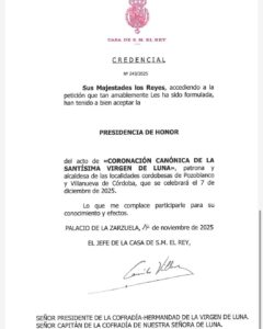 La Casa Real Acepta La Presidencia de Honor ofrecida por las Hermandades de la Virgen de Luna de Pozoblanco y Villanueva de Córdoba 24 de noviembre de 2025 No hay comentarios Leer más »